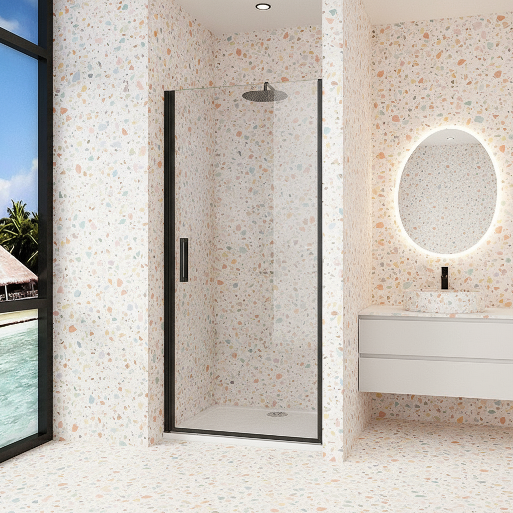 Duschtür 200cm Höhe Schwarz Nischentür 80/90/100cm 8mm ESG Pendeltür Schwingtür mit Nano-Glas