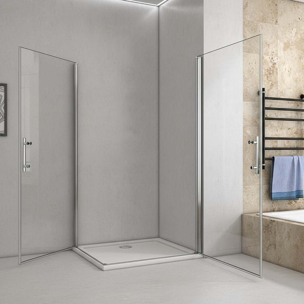 Eckeinstieg Duschkabine 70–100cm | Höhe 185cm | Schwingtür/Drehtür mit ESG Glas