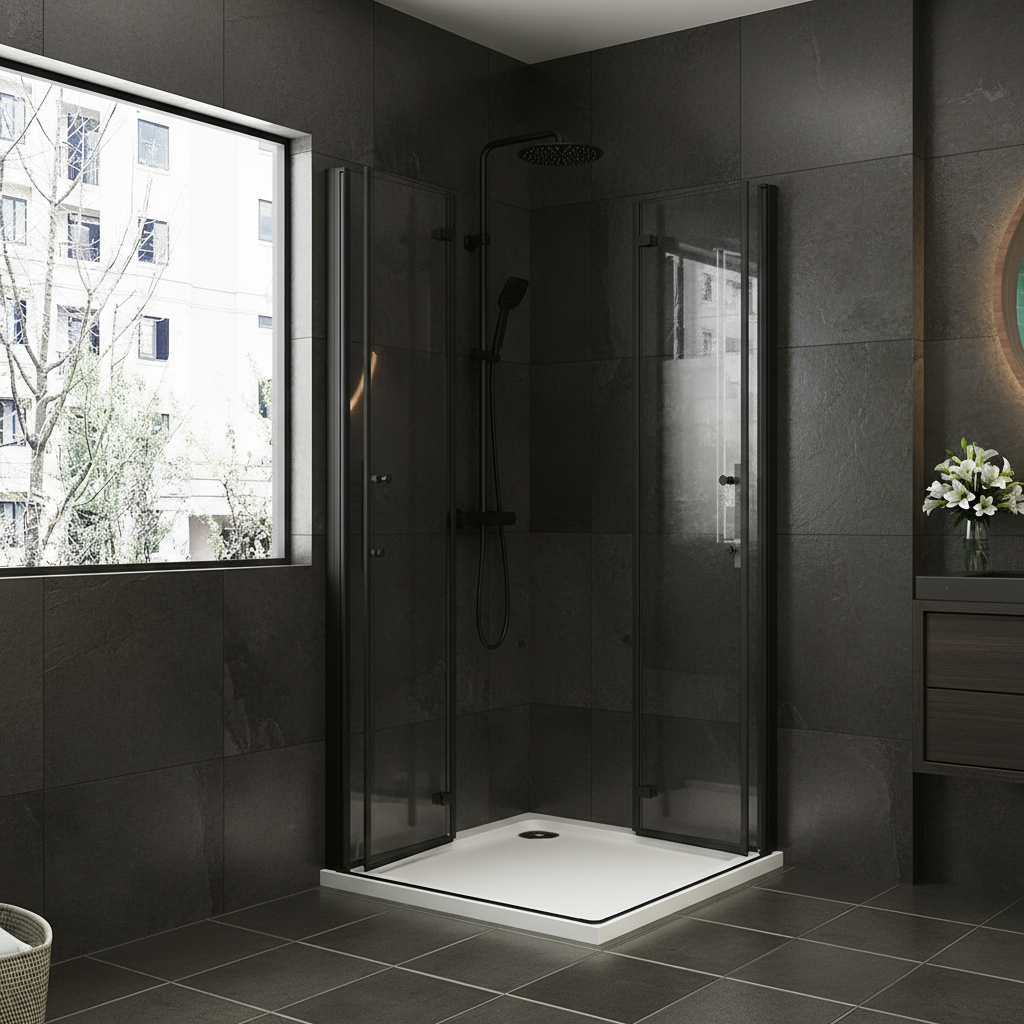 Eckige Duschkabine Falttür ESG Glas 70–120x195cm | Schwarz mit Glasschutzfolie