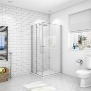 Die Eckdusche mit Drehtür oder Falttür vereint modernes Design mit hoher Funktionalität. Mit einer Höhe von 185 cm und variablen...