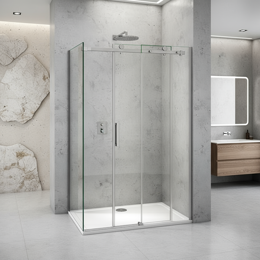 Duschabtrennung mit Schiebetür, Höhe 195 cm – modern, funktional und pflegeleicht.