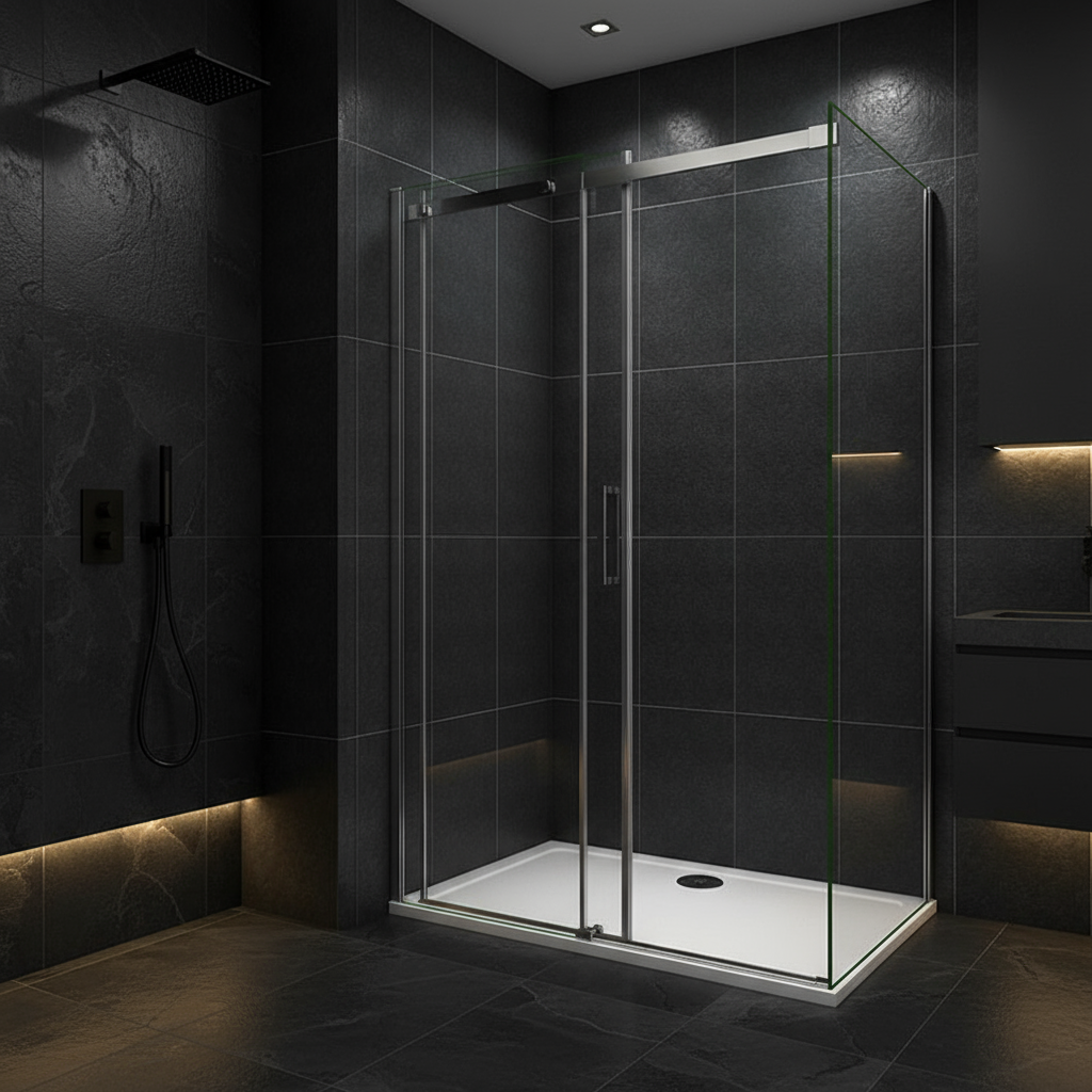 Diese Duschkabine ist die ideale Wahl für Nischen von 100–160 cm Breite. Mit Schiebetür-Konstruktion und Doppelseite sorgt sie für bequemen Einstieg und maximale Stabilität.