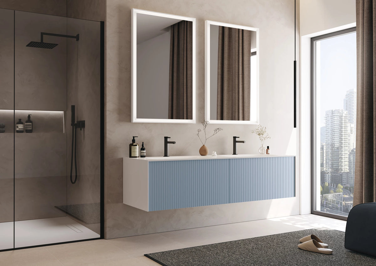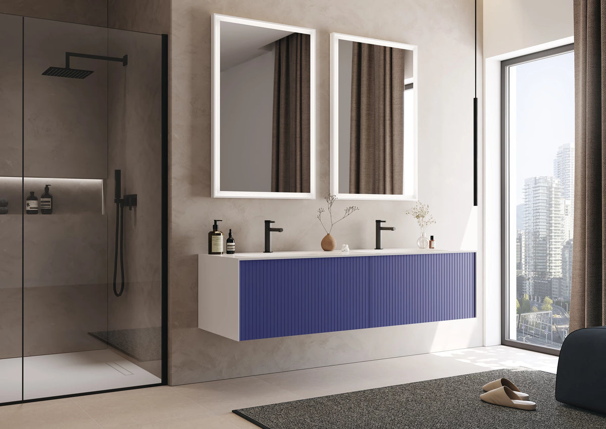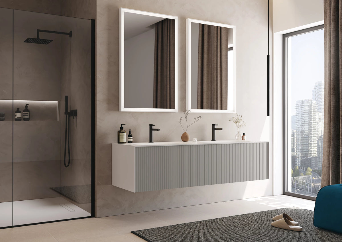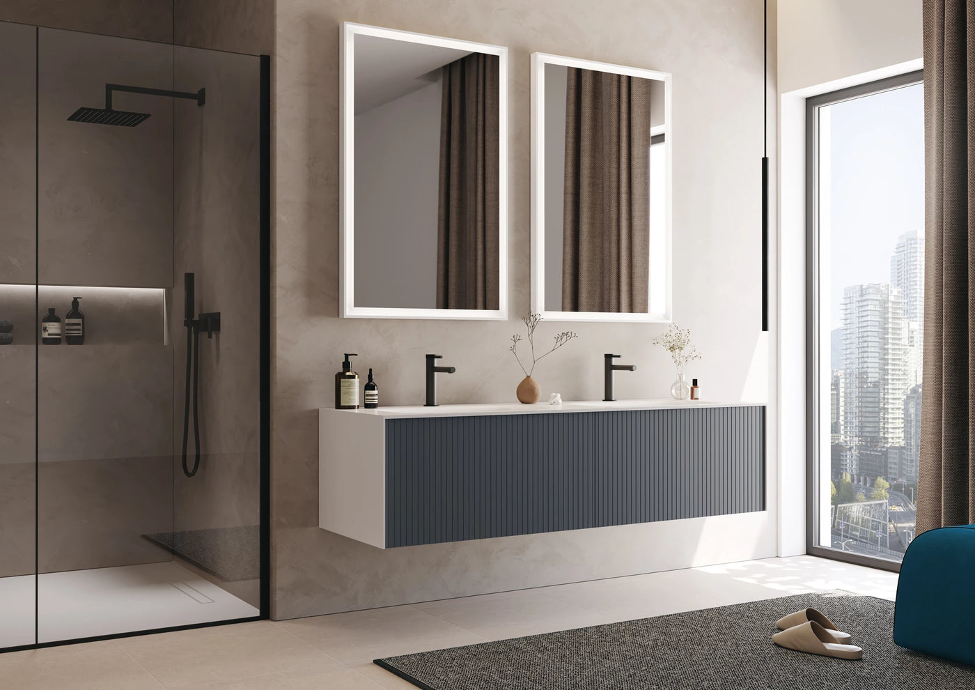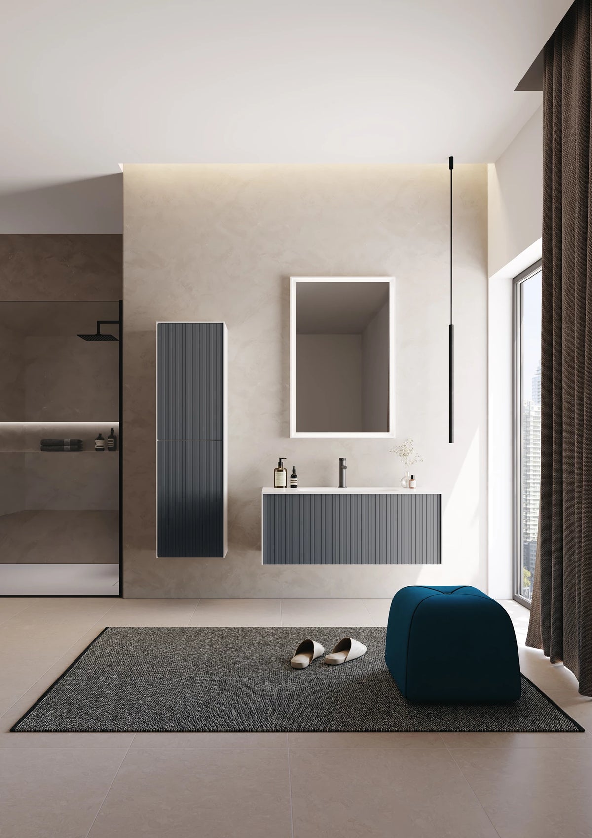 Optional ergänzt ein LED-Spiegel mit Bewegungssensor die CUBE Kollektion. Die Kombination aus klaren Linien, edlen Farben und langlebigen Materialien macht diese Linie zu einer Premium-Wahl für moderne Bäder.