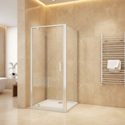 Diese U-Form Duschkabine mit Pendeltür / Schwingtür vereint funktionales Design mit höchstem Komfort. Mit einer Höhe von 185 cm und wählbaren Breiten von 80, 90 und 100 cm passt sie perfekt in kompakte wie auch großzügige Badezimmer. Das stabile ESG-Echtglas sorgt für Sicherheit, während die großzügige Türöffnung den Einstieg besonders komfortabel macht.